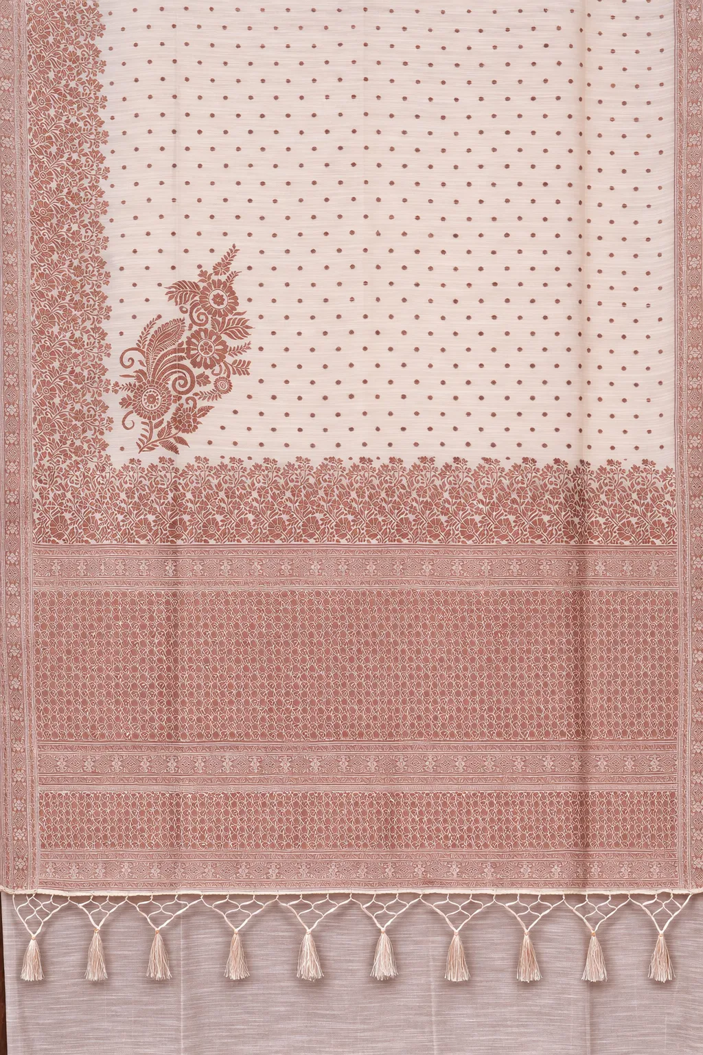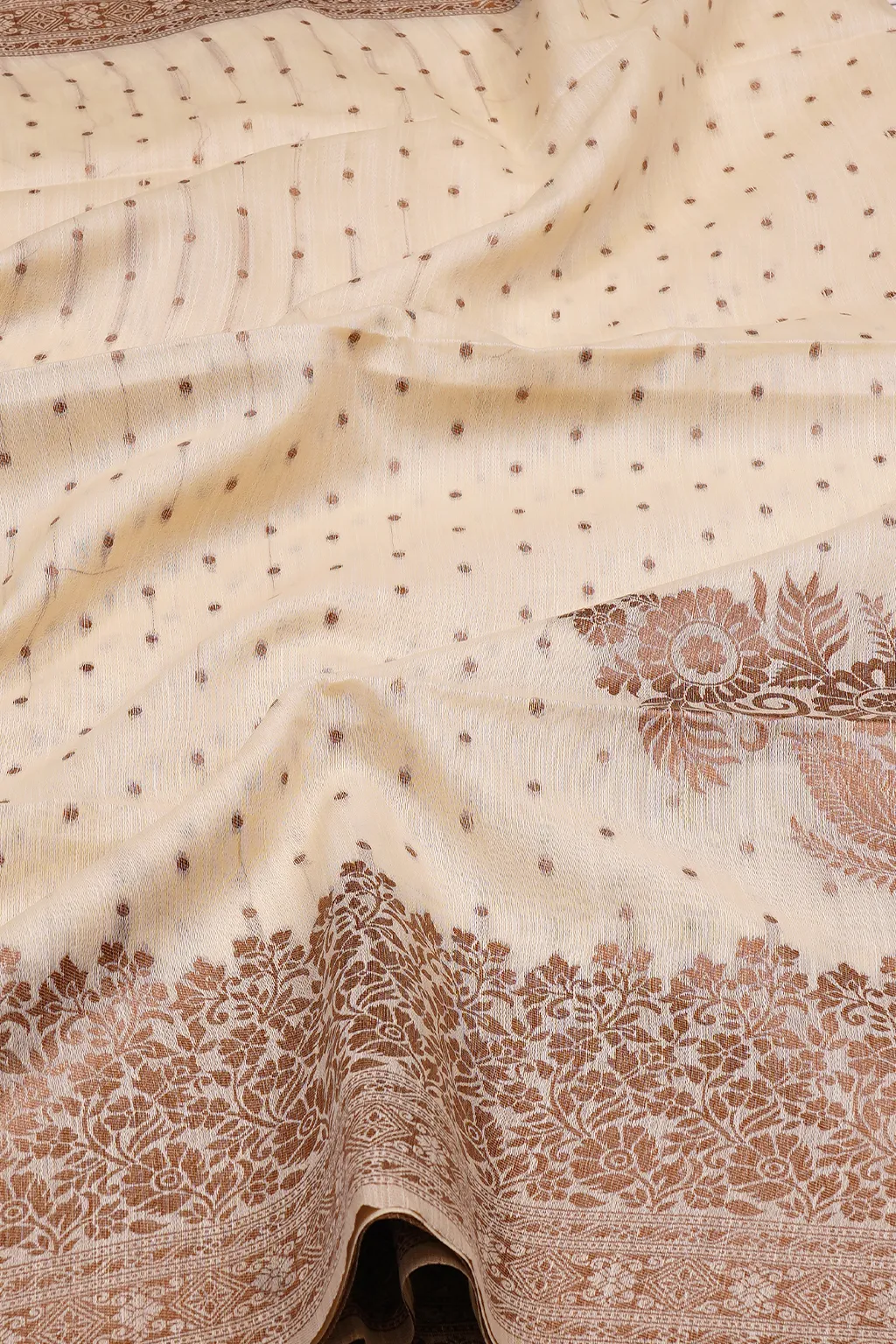 Warm beige hues with fine patterns and a rich pallu. Subtle sophistication that never goes out of style.