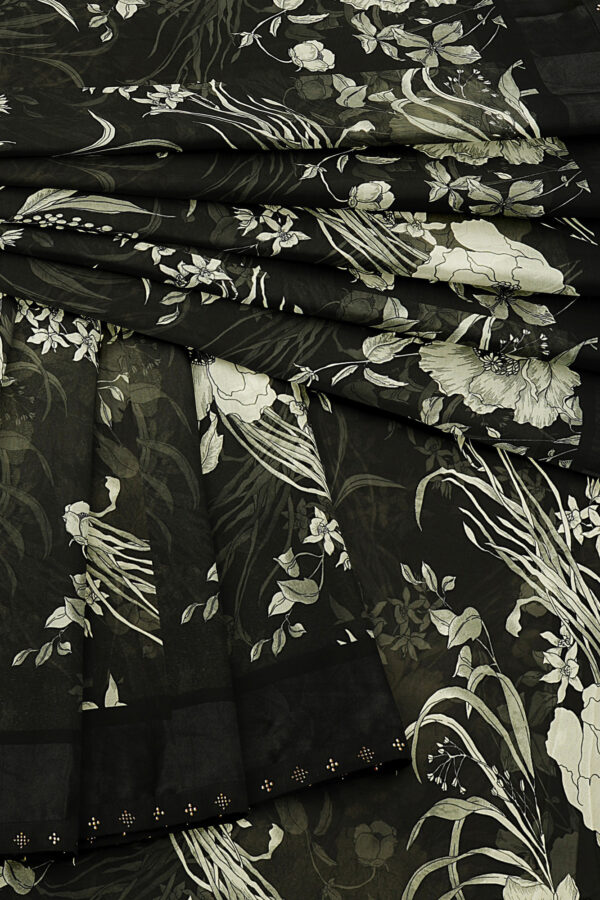 Black and white saree with black border