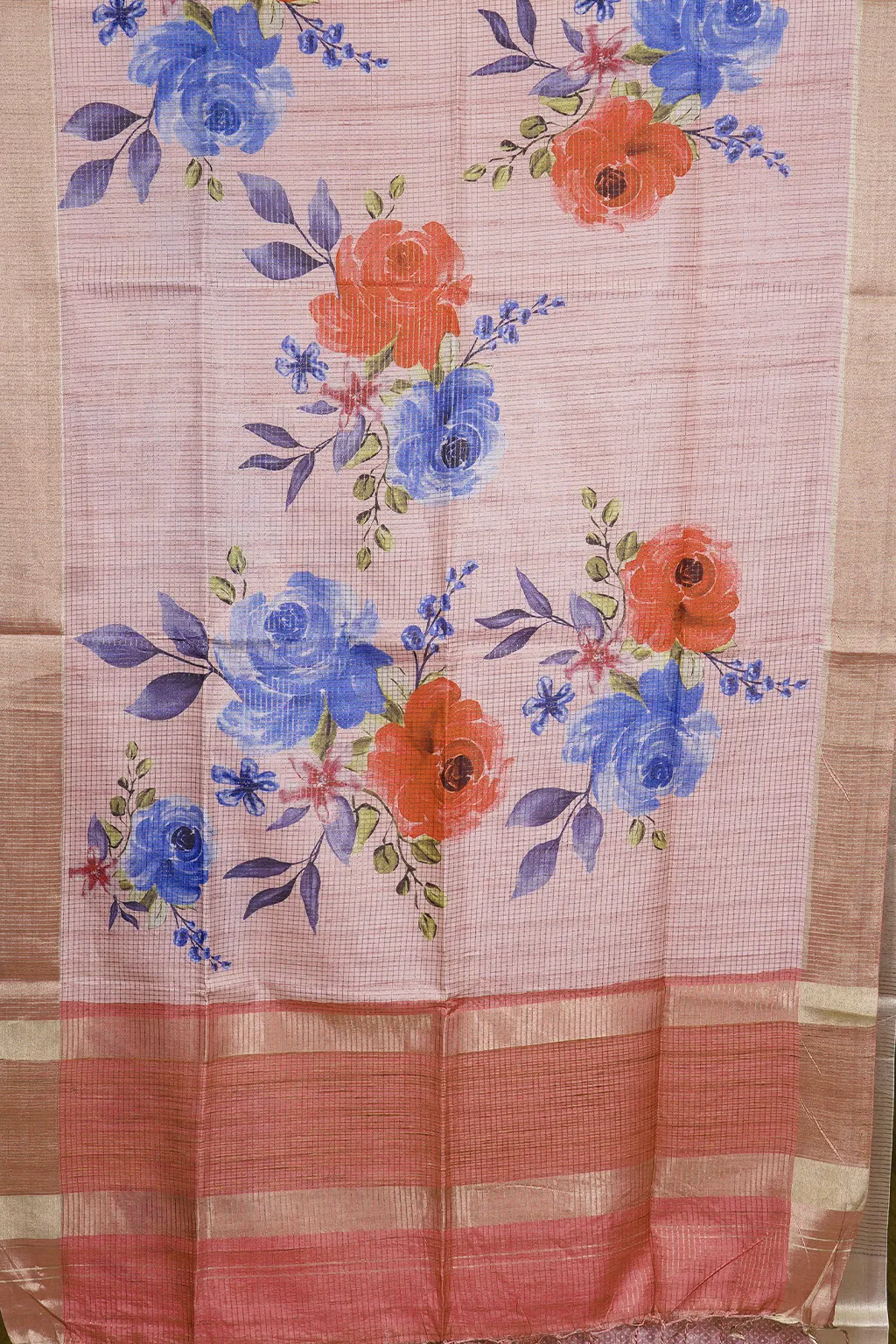 Blush Pink Garden Floral Semi Tussar Silk Saree