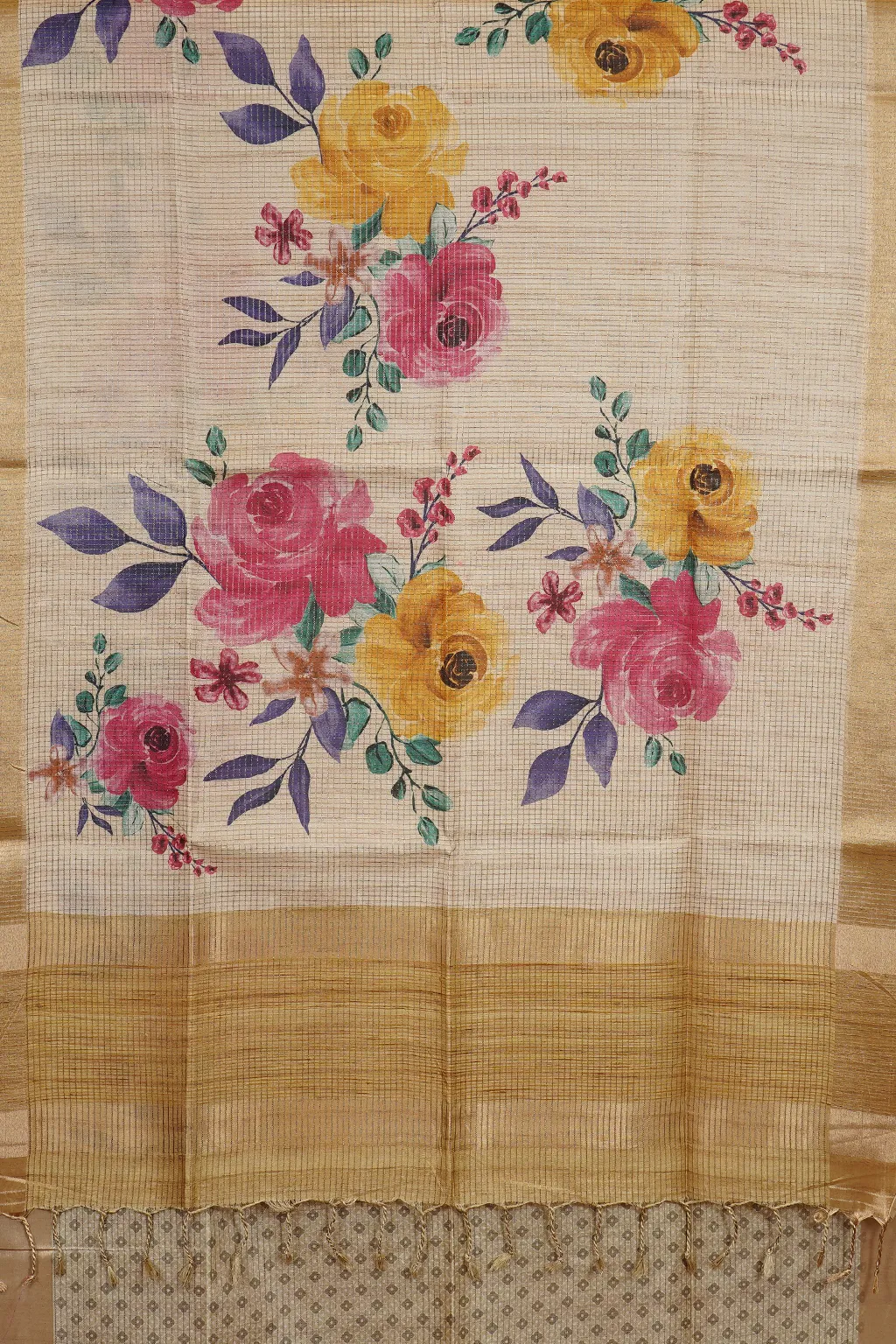 Golden Beige Floral Bloom Semi Tussar Silk Saree