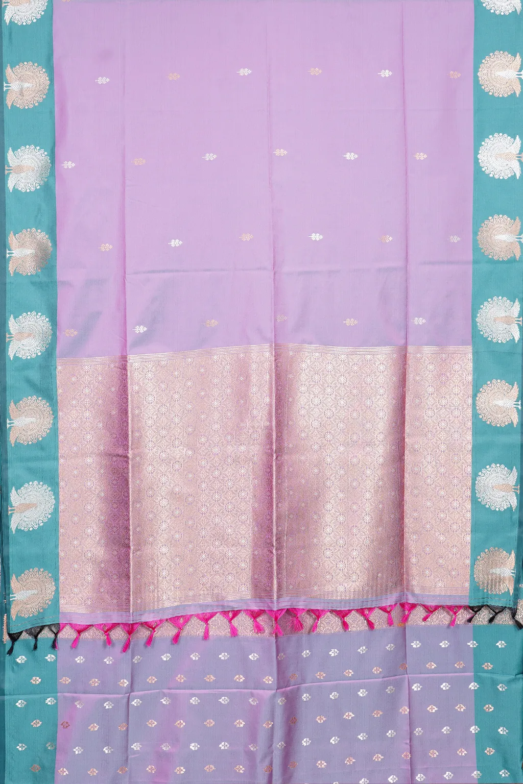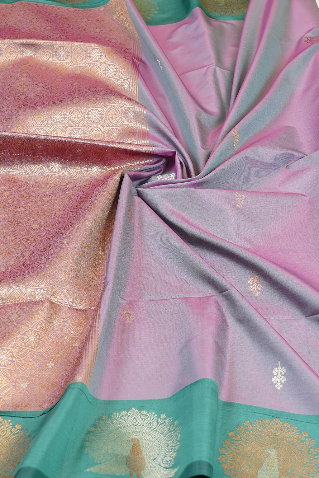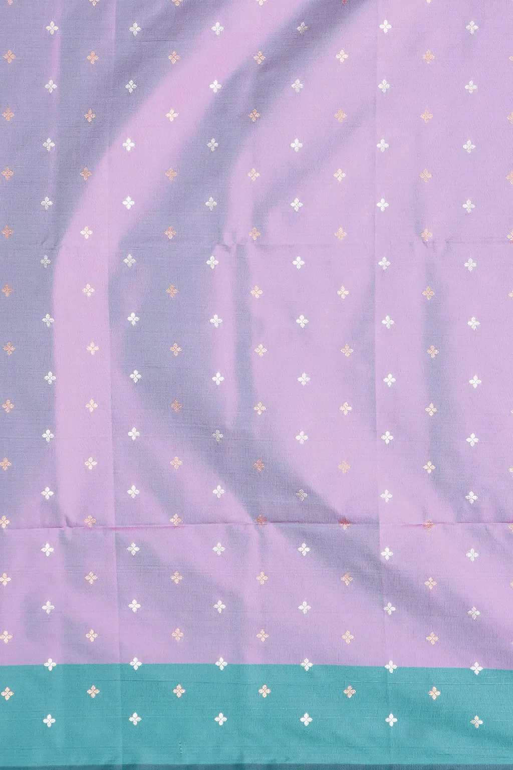 Soft lavender hues contrasted with a refreshing teal border. A graceful pick for light, elegant occasions.