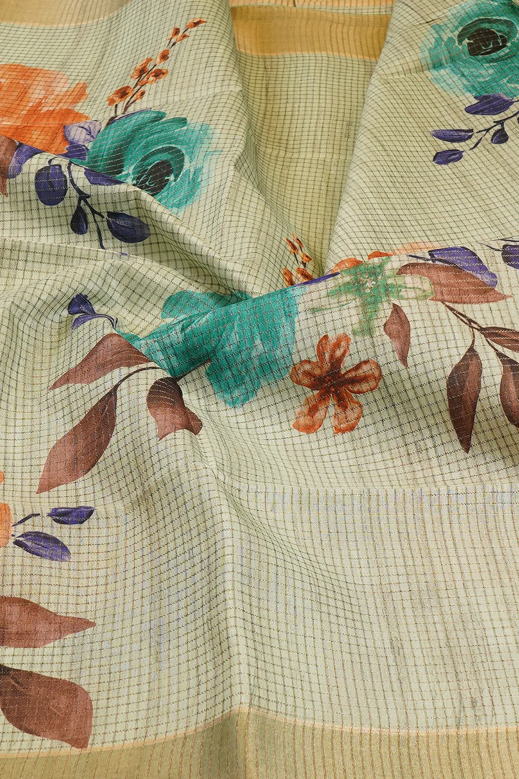 Mint Green Pastel Floral Semi Tussar Silk Saree