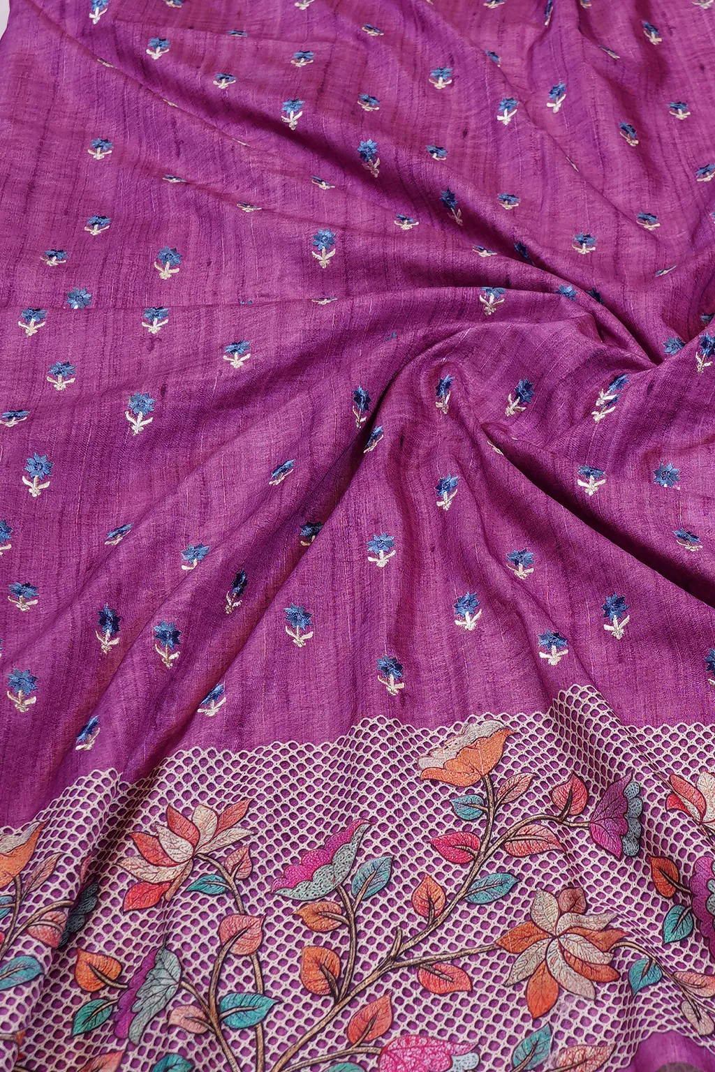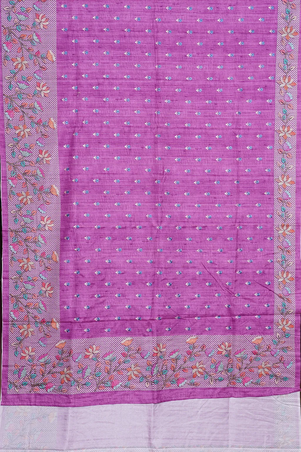 A vibrant orchid purple drape enhanced with delicate woven patterns and elegant border detailing. A perfect mix of contemporary colour and classic craft.