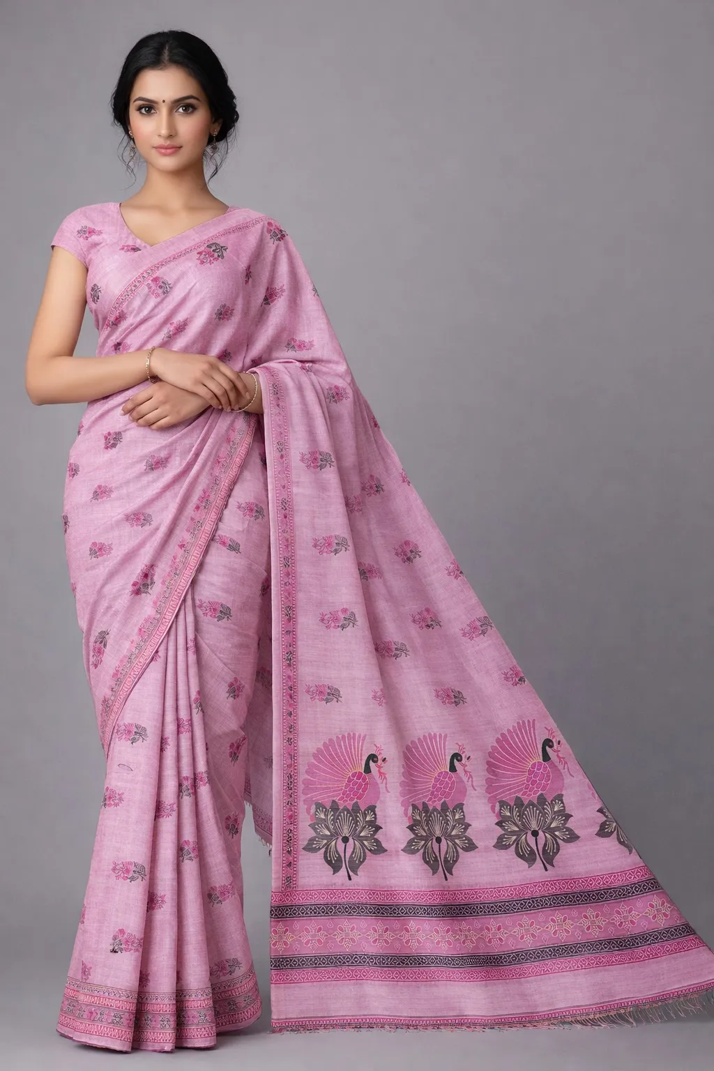 Rani Pink Butta Silk Saree with Regal Paisley Pallu